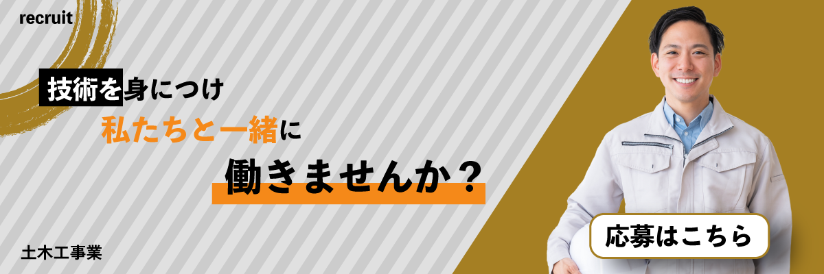 橋梁・トンネル・道路などの交通インフラをより円滑、安全に運用する整備工事をはじめ、山林の地すべり・土砂崩れ、河川の氾濫、堤防の決壊などの自然災害を未然に防ぐための対策工事など、あらゆる土木工事をオールマイティに行っています。